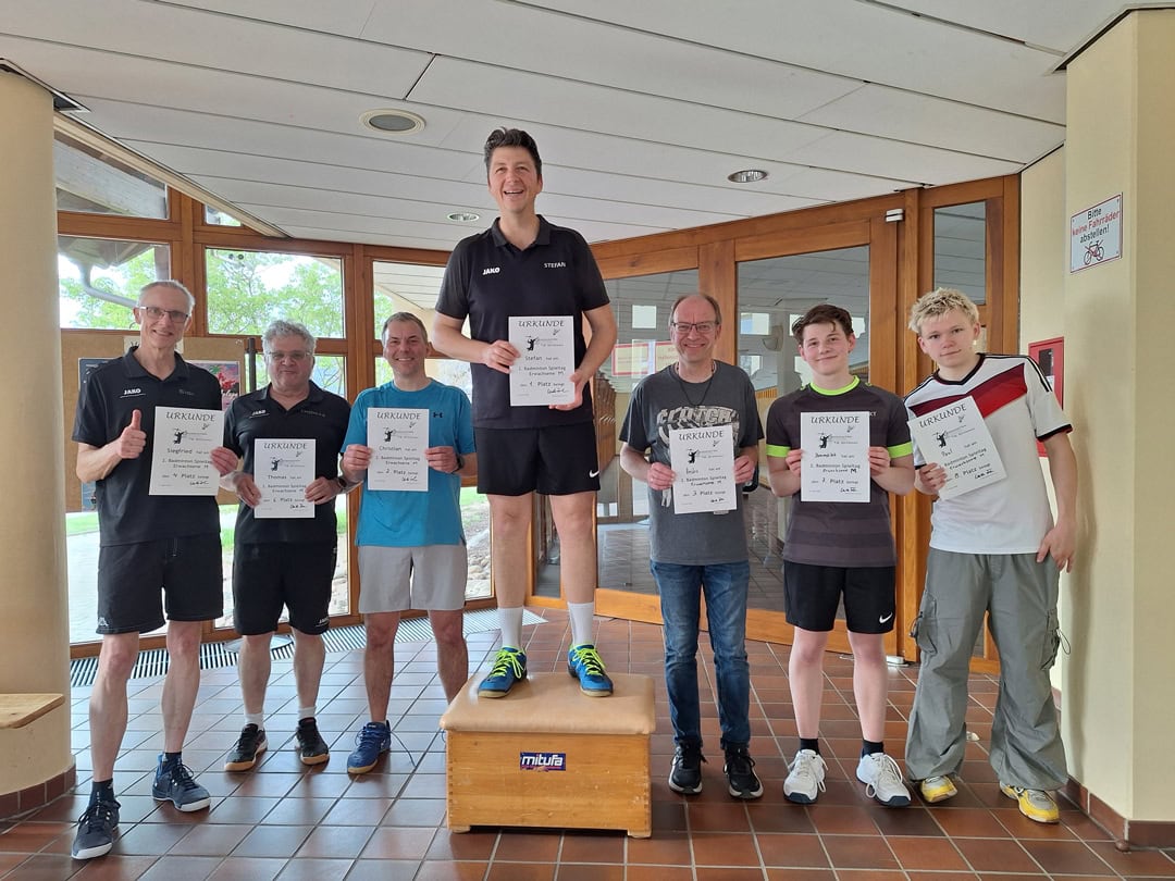 Herzlichen Glückwunsch an alle Teilnehmer! Ein schöner, spannender, sportlicher, fröhlicher aber auch anstrengender 2. Badminton Spieltag geht zu Ende. Ein ganz dickes Dankeschön an alle, die von morgens bis abends dazu beigetragen haben. Vor allem beim Orga-Team Birgit, Heiko, Thomas, Benedikt und Stefan – auf ein neues in 2027 beim 3. Offenauer Badminton-Spieltag!